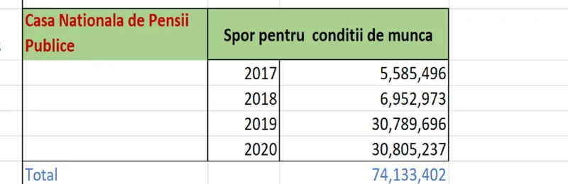 Newsweek România a obținut documente oficiale de la Ministerul Muncii în care apărea faptul că, anual se dau zeci de milioane, sporuri pentru condiții vătămătoare exact la Casa de Pensii.