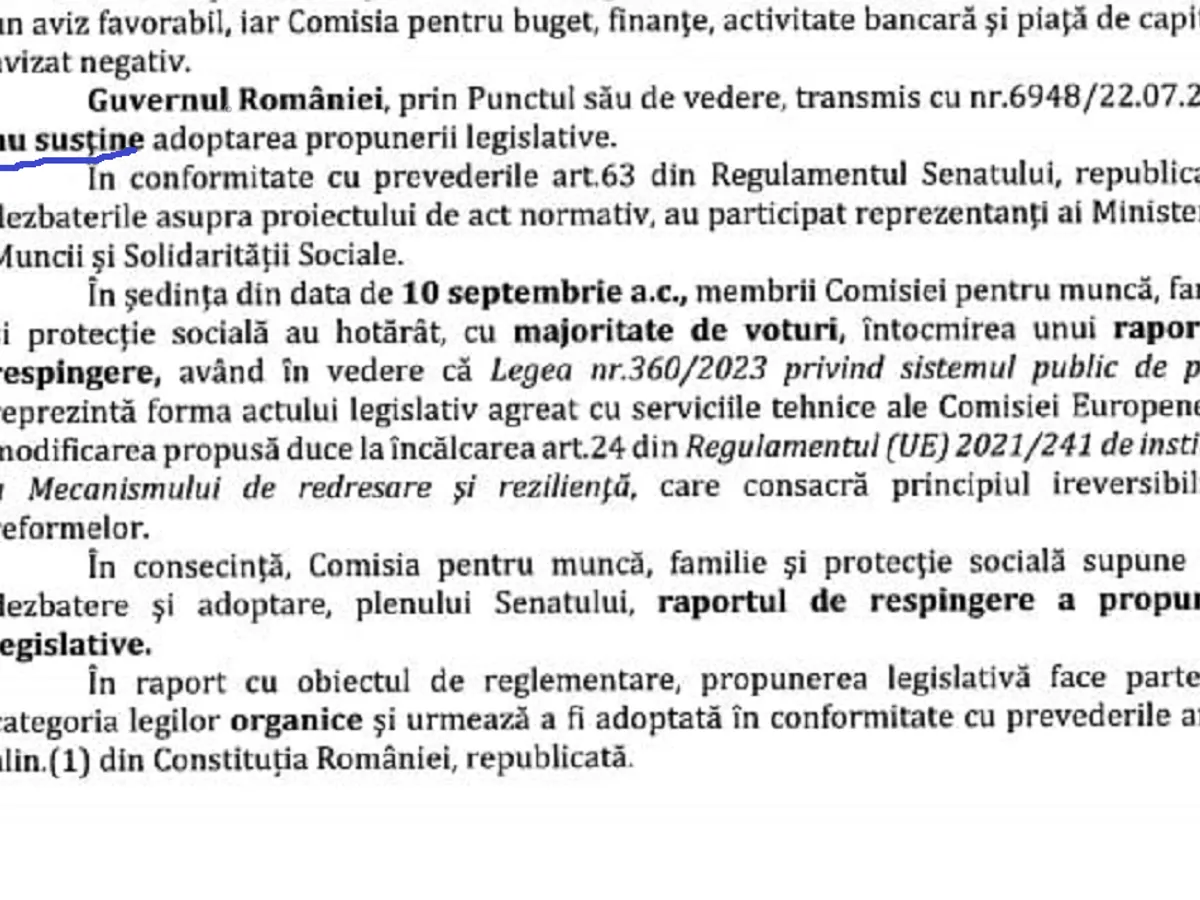 PENSIE: Surpriză: așa cum se vede mai jos, Guvernul a dat AVIZ NEGATIV!