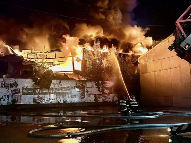 Intervenţia a implicat un grad mare de risc pentru echipajele de pompieri, din cauza prăbuşirii rapide a structurii metalice a depozitului, sub efectul temperaturilor ridicate din interior", arată sursa citată.