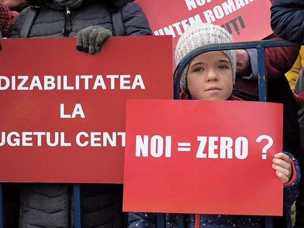 „S-au spălat cu toții pe mâini de această problemă. Banii aceștia, cei 1.200 de lei pe lună, sunt bani de supraviețuire“, a acuzat Mădălina Turza, activistă pentru persoanele cu dizabilități și mama unei fetițe cu sindromul Down.