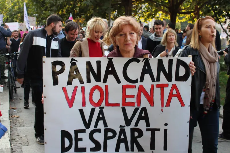Protest al rețelei VIF - Rețeaua pentru prevenirea și combaterea violenței domestice. Sursa: Filia