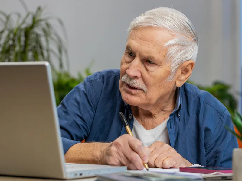 Pensionar citind talonul de pensii - Foto. Freepik