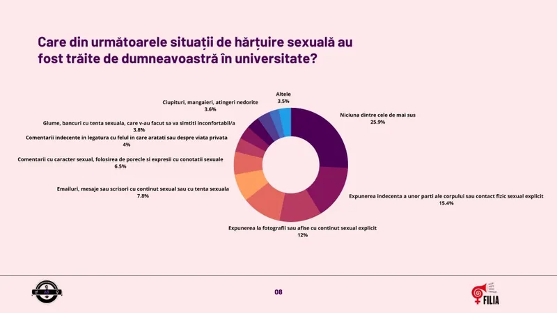 368 de studenți și absolvenți din București, Iași, Cluj, Brașov și Craiova au răspuns la un chestionar online, în cadrul unei cercetări pe tema hărțuirii sexuale în universități, derulată de Asociația FILIA și Inițiativa „Acționăm pentru siguranță în universități”.