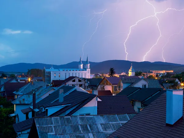 Imaginea oraşului, pe înserat, cu fulgere ameninţând, în zare - Foto: Pexels/Nikita Belokhonov (Imagine cu caracter ilustrativ)