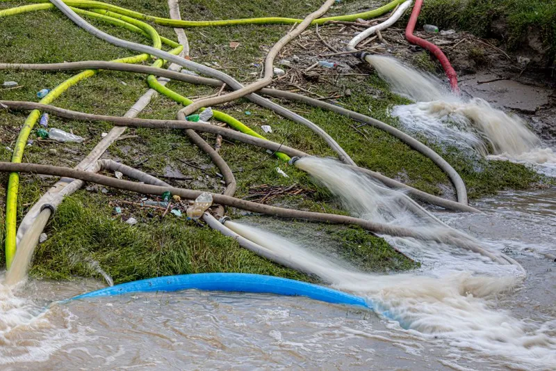 Apă pompată la Bacel, în precedentul puseu hidrologic - Foto: INQUAM PHOTOS/Ovidiu Micsik
