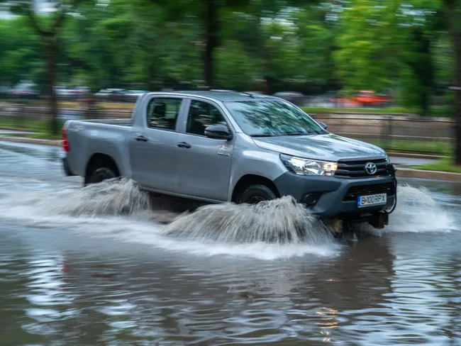 Maşini mergând la Splaiul Unirii cu Mihai Bravu, prin carosabilul inundat - Foto: INQUAM PHOTOS/Pană Tudor