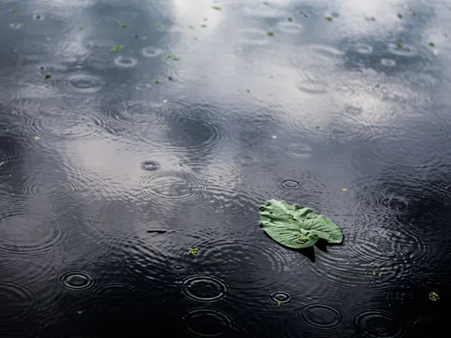 Frunză căzută într-o baltă, în timpul unei ploi torenţiale - Foto: Freepik/wirestock