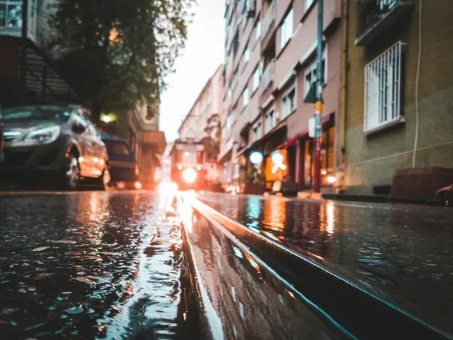 Bărbat mergând pe stradă cu cizmele, din cauza ploii torenţiale - Foto: Pexels/Giada Venturino
