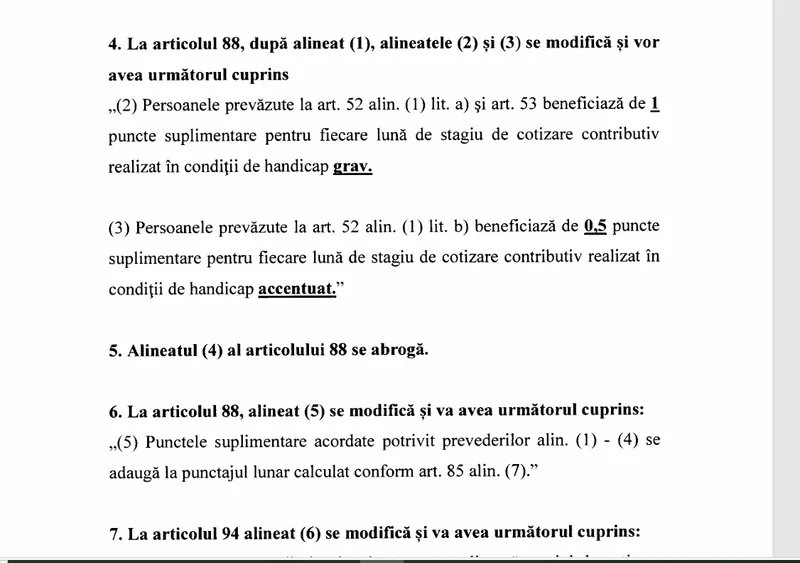 (3) Persoanele prevazute la art. 52 alin. (1) lit. b) beneficiaza de 0,5 puncte suplimentare pentru fiecare luna de stagiu de cotizare contributiv realizat in conditii de handicap accentuat".