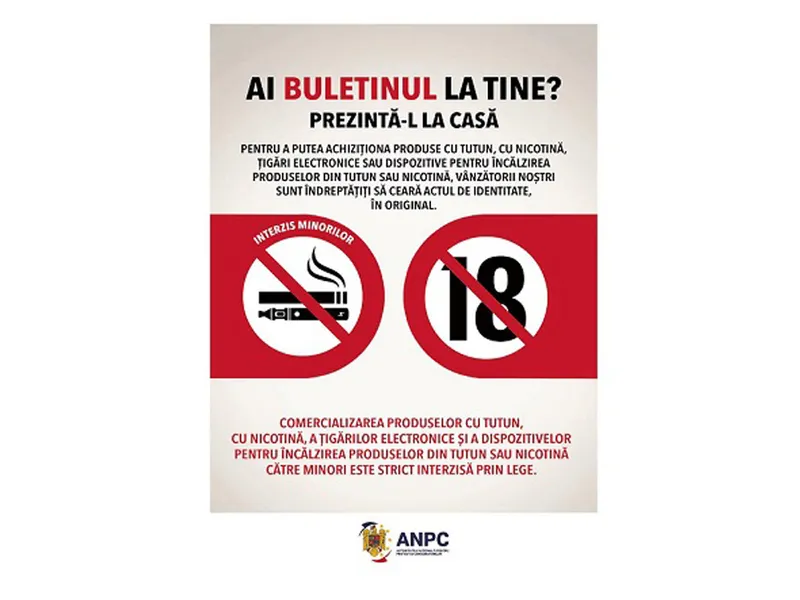 „Operatorii economici care desfășoară activitate de comercializare în magazine prin vânzare directă, a tuturor categoriilor de produse care conţin tutun, a ţigaretelor electronice, a flacoanelor de reumplere pentru ţigaretele electronice, a dispozitivelor electronice pentru încălzirea tutunului şi a produselor destinate inhalării fără ardere din înlocuitori de tutun, a pouch-urilor – pliculeţelor cu nicotină pentru uz oral şi a produselor destinate inhalării fără ardere din înlocuitori de tutun, au obligaţia de a informa consumatorii prin afișare, la locul de comercializare, a inderdicției de vânzare a acestor produse către persoanele care nu au împlinit vârsta de 18 ani”, conform InfoCons.