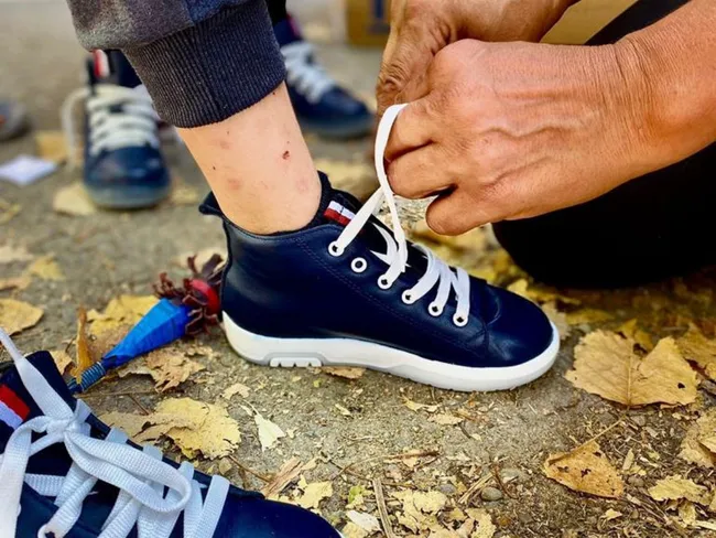 Copilașii sunt echipați cu ghiozdane, ghete Inimo, blugi, geci, tricouri, lenjerie de corp, produse de igienă și tot ce are nevoie un copilaș pentru a merge la școală.