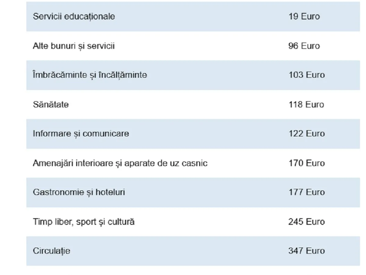 Aceasta este o creștere semnificativă, pentru că în 2021 era de doar 70 de euro. În general, gospodăriile au cheltuit cu 8,5% mai mulți bani în fiecare lună. În cifre pure, a fost cu 223 de euro mai mult pe lună față de 2021.
