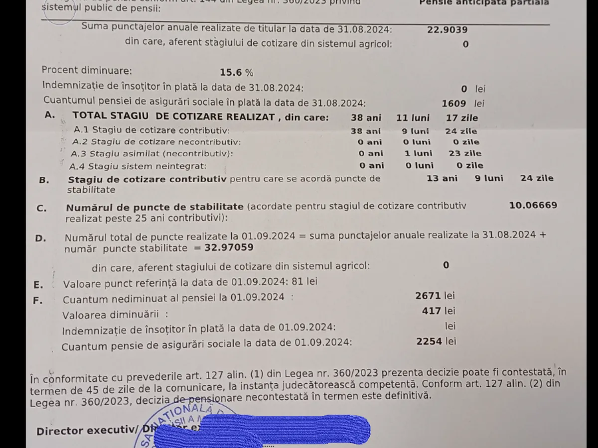 Conform documentului oficial, pensionarul a muncit aproape patru decenii, acumulând un stagiu total de cotizare de 38 de ani, 11 luni și 17 zile, din care aproape integral contribuție efectivă – 38 de ani, 9 luni și 24 de zile.