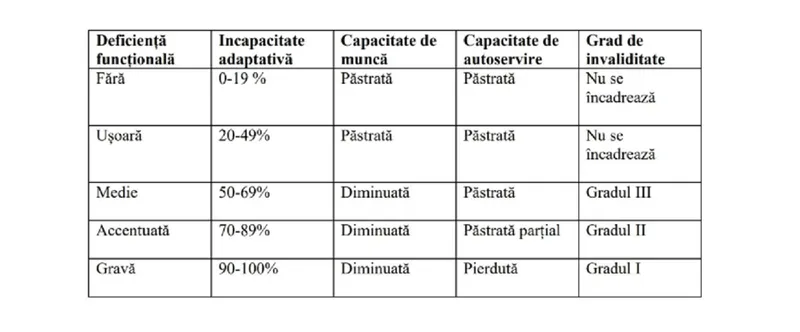 Deficiența funcțională se corelează cu incapacitatea adaptativă și gradul de invaliditate, scrie avocatnet.