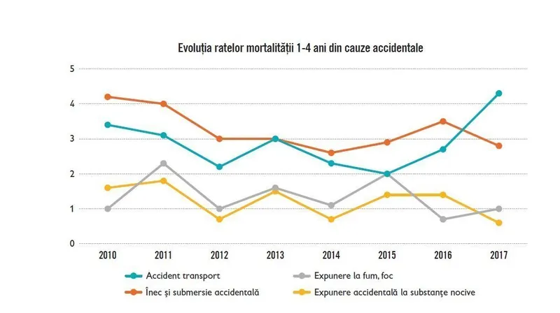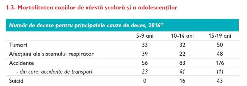 Rata mortalității în 2017 a fost de 61,69 la 100.000 de copii și adolescenți, în timp ce media UE a fost de 31,60.