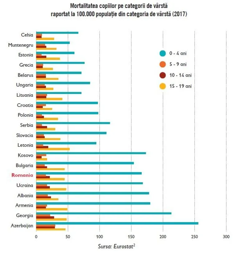 Deși ar putea fi invocată o explicație de natură economică, comparația cu țări cu venituri mai scăzute din regiune este defavorabilă, atrage atenția raportul Salvați Copiii. Cel mai mare număr de copii decedați se înregistrează la copiii sub cinci ani.