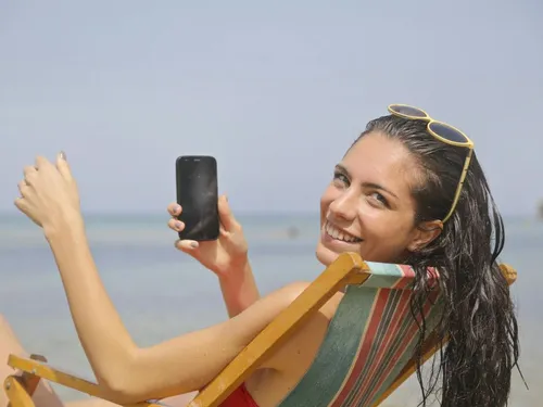 Femeie în concediu făcând semnul inimii în soare - Foto: Pexels/Hassan OUAJBIR