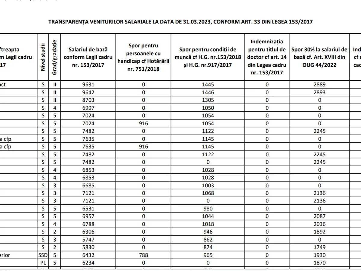 Direcția nu și-a mai actualizat grila de salarii din 2021, când directorul lua sporuri de 5.500 de lei pe lună. Probabil, azi sunt mai mari. Sporul pentru condiții grele este de 15% din salariu.