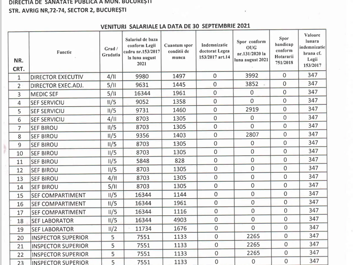 Cel puțin pentru șefii acestor direcții din țară și din București (câteva sute) aceste sporuri nu se justifică. Tabelul de mai sus este de la Direcția de Sănătate Publică din Sibiu - mai jos aveți documentul complet în format PDF.