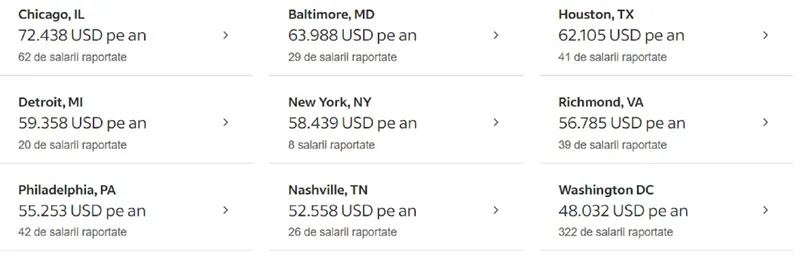Informațiile despre salarii provin din 63 de date colectate direct de la angajați, utilizatori și anunțuri de locuri de muncă trecute și prezente pe Indeed în ultimele 36 de luni.
