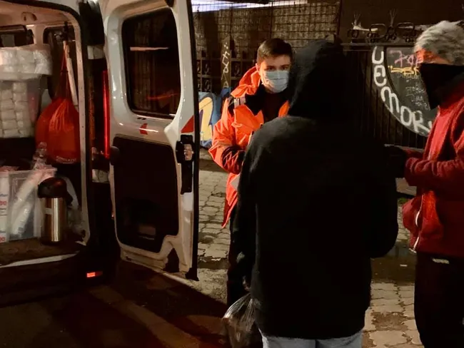 Pachetele conțin sandvișuri, medicamente, seringi, comprese, apă pentru preparate injectabile, șervețele umede, ceva dulce și prezervative. Echipa Carusel își va petrece noaptea pe teren. Vor merge la alți consumatori, oameni vulnerabili care nu se pot deplasa, la oameni care locuiesc în adăposturi improvizate și la lucrătoarele de sex comercial. În multe locuri, ajung în urma sesizărilor care vin de la oameni. „În perioada asta a fost și este foarte greu, încercăm să îi ajutăm pe oameni să le facem buletine, ca să aibă acces la tratament, în spitale, au nevoie de săpun, de pijamale, poate de ceva de mâncare”, îmi explică Zamfi și continuă: „Nu stăm pe loc, încercăm să ne adaptăm la condiții”.