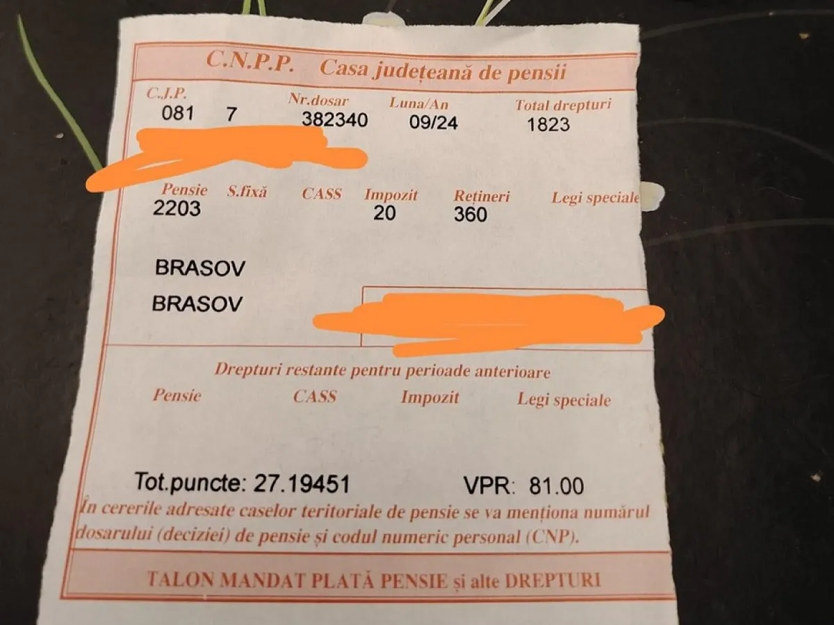 În paralel s-a făcut și distribuirea taloanelor și a pensiilor prin poștaș. Un pensionar din Brașov a făcut public talonul de pensie susținând că există diferențe de sute de lei între vechiul și actualul document.