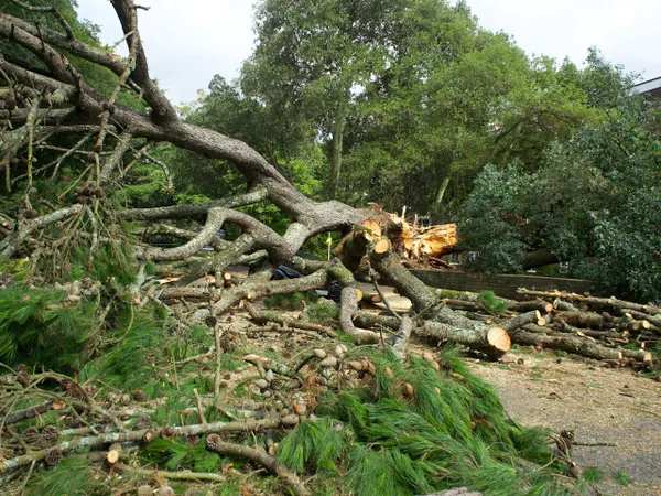 Un copac a căzut pe o mașină în care se afla o familie. Copilul a avut nevoie de îngrijiri medicale