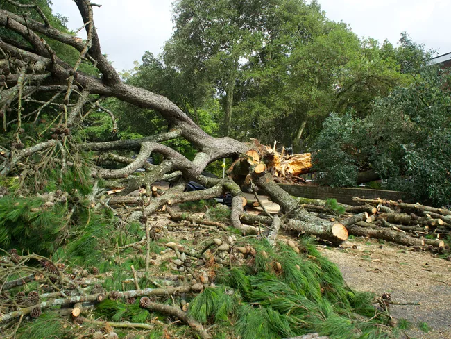 Conform sursei citate, pe strada Fabricii, un copac a căzut peste un pieton - o femeie de 22 de ani. Aceasta a fost transportată la Spitalul Universitar în stare de conştienţă, cu suspiciune de fractură la un picior. De asemenea, au fost avariate 3 autoturisme şi o ţeavă de gaze.