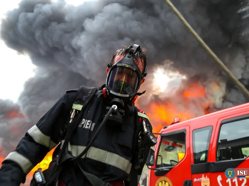 Pompierii au evacuat, preventiv, 40 de locatari ai unui bloc din apropierea depozitului care a luat foc, vineri, în localitatea Voluntari.
