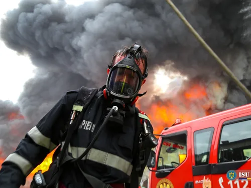 Pompierii bucureşteni intervin, vineri, pentru stingerea unui incendiu produs la un depozit de detergenţi din localitatea Voluntari, judeţul Ilfov.