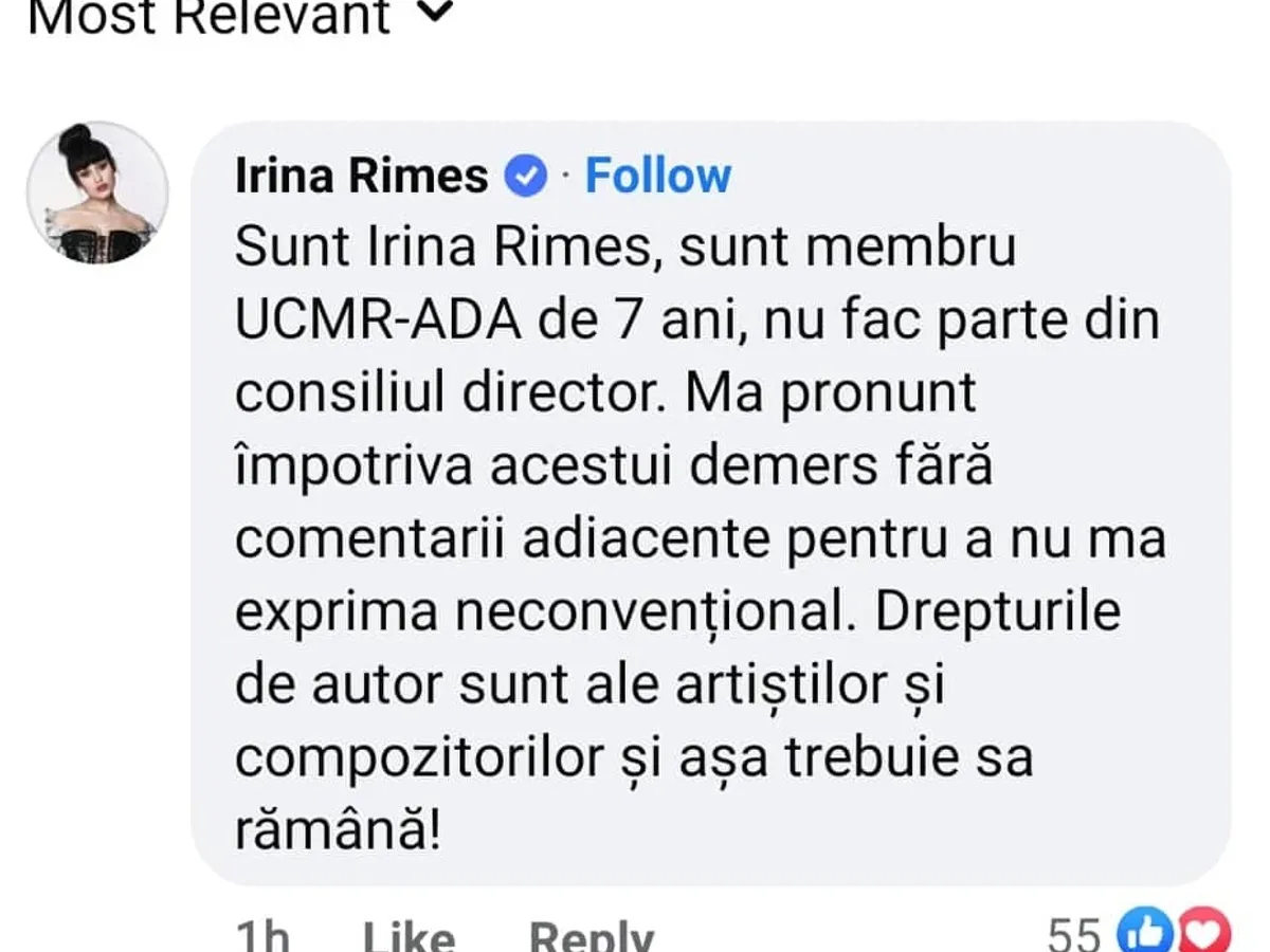 Irina Rimes i-a scris lui Bogdan Gheorghiu că „drepturile de autor sunt ale artiștilor și compozitorilor și așa trebuie sa rămână!”, Horia Moculescu - „nu trebuie să cereți OGC- urșilor o situație pe care o puteți afla printr-un simplu control administrativ, fără a sugera răzmerițe într-un pahar cu apă plată!”.