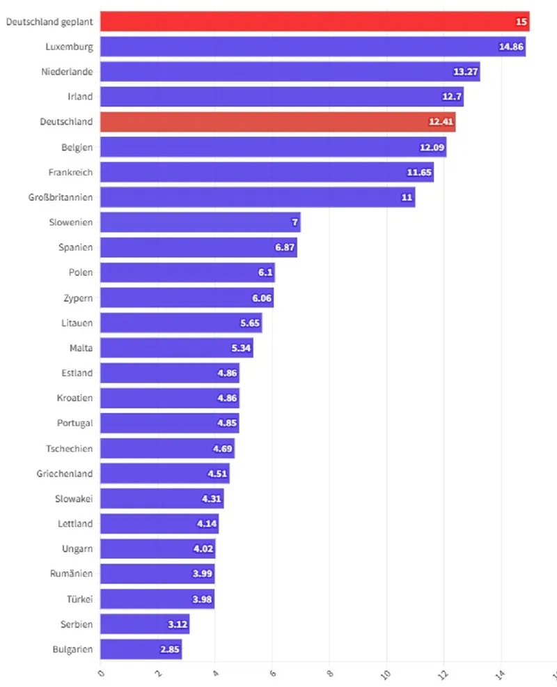 Însă Germania ar putea depăși recordul mondial dacă ar implementa 15 €/ oră salariul minim garantat.