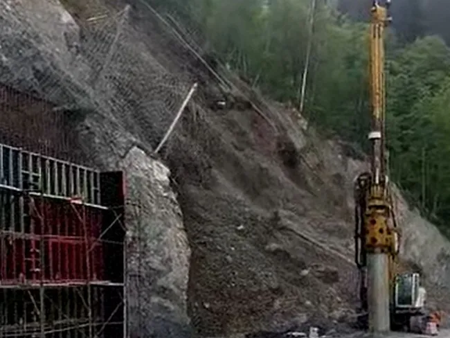 Constructorul avea deja în execuţie lucrări de rânguire şi consolidare a versantului cu un zid de sprijin.
