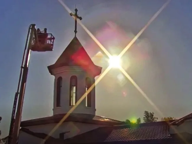 De aceea am urcat cu un mijloc tehnic, care a fost cel mai potrivit și fără risc, și am sfințit crucile. Cea de pe turlă și cea de pe pronaos”, a declarat după sfințire ÎPS Teodosie, conform Digi24.