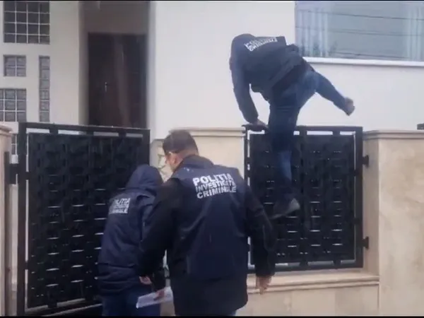 Momente penibile cu Poliţia Română, la poarta primarului condamnat Cătălin Cherecheş. În Baia Mare, la reşedinţa acestuia, poate fi văzut un poliţist sărind peste gard.