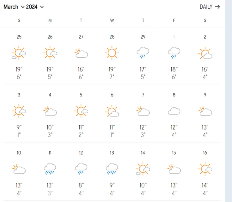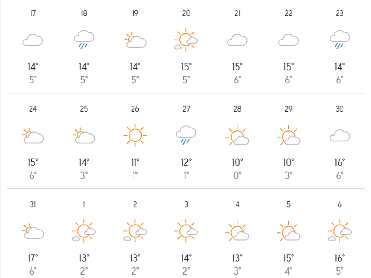 După cum se vede, martie debutează cu ploi, iar cea mai mare temperatură va fi de 18 grade, media fiind pe la 12 grade. Vor fi zile în șir cu vreme sub 10 grade.