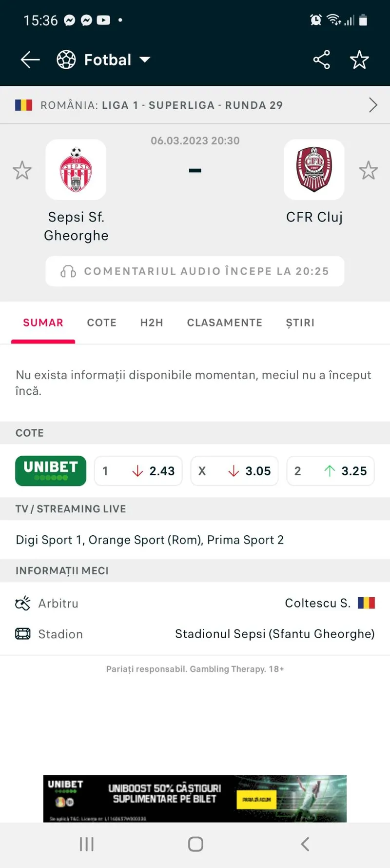 Alertă la pariuri. S-ar fi pariat mult pe victoria lui Sepsi contra CFR. Fluctuații mari de cote