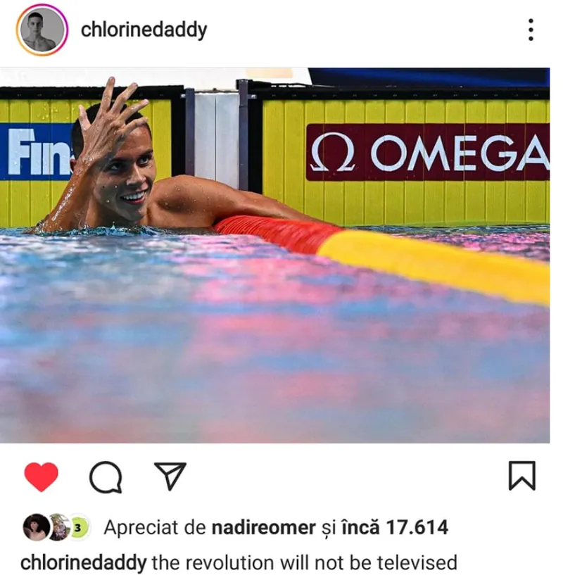 „Revoluția nu va fi televizată/ The revolution will not be televised”, a scris David Popovici, cu puțin timp înainte de a câștiga medalia de aur.