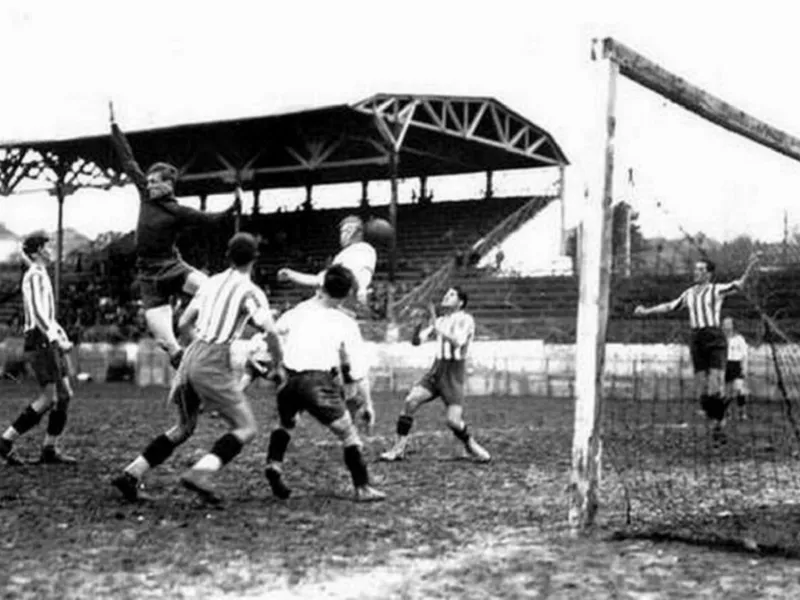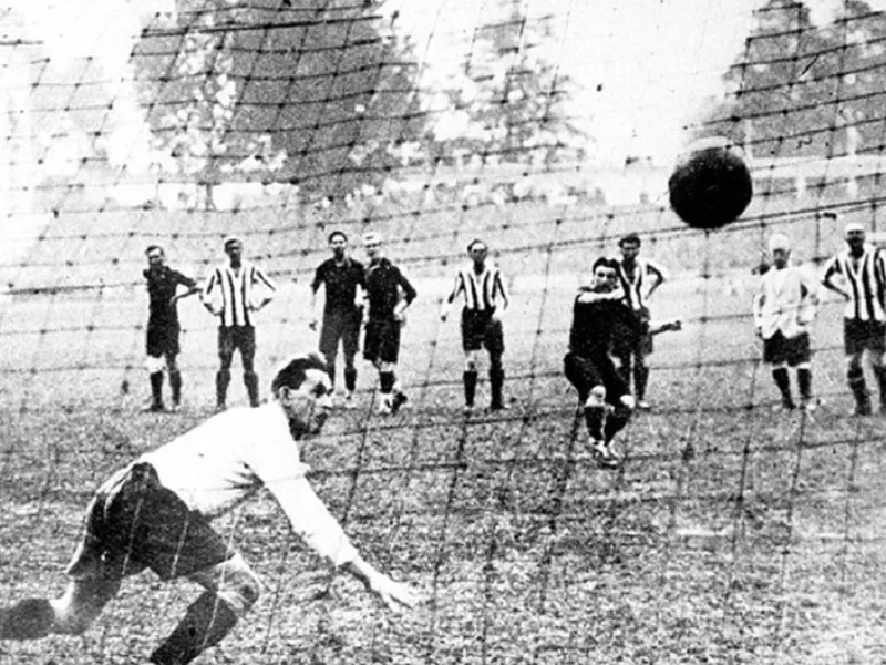 Golul din penalty marcat de Rónnay, în minutul 31 al meciului din 1922, prima reușită din istoria echipei naționale - Foto: aspolitehnica.upt.ro