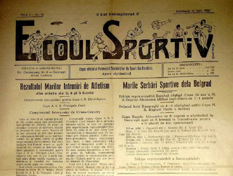 Publicația „Ecoul Sportiv” anunța victoria naționalei de fotbal în partida de la Belgrad, din 8 iunie 1922 - Foto: frf.ro