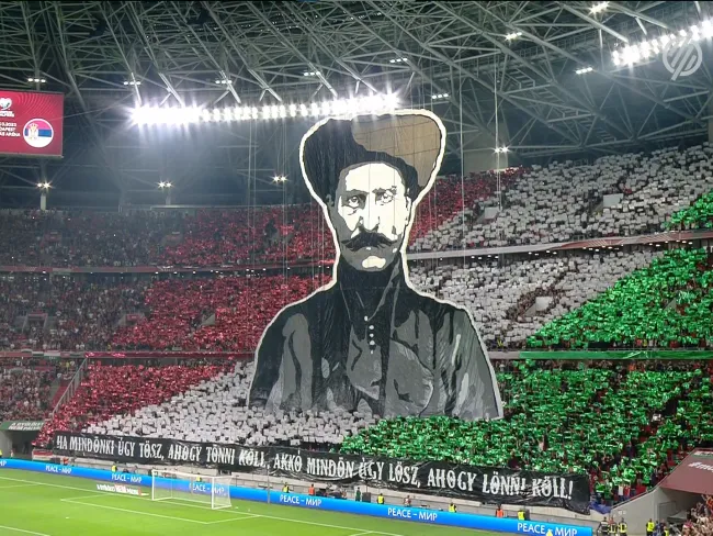 Suporterii maghiari de pe ”Puskas Arena” au avut o scenografie specială, cu Sándor Rózsa protagonist. În 1848 a participat la Revoluția Maghiară, când a condus 150 de haiduci și a luptat împotriva sârbilor.