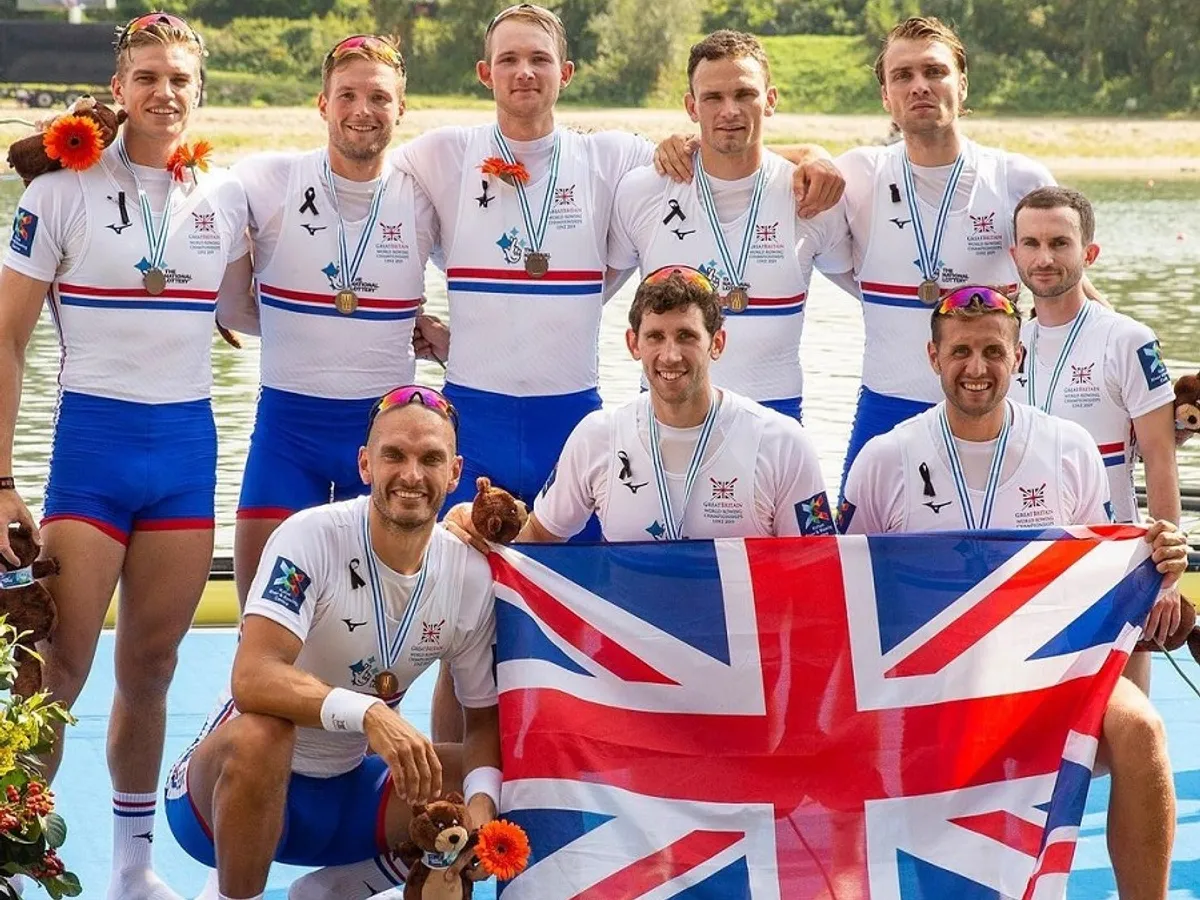 Henry Fieldman, între cele opt canotoare ale echipajului de 8+1 rame al Marii Britanii - Foto: Instagram/Henry Fieldman