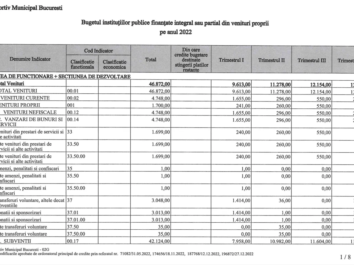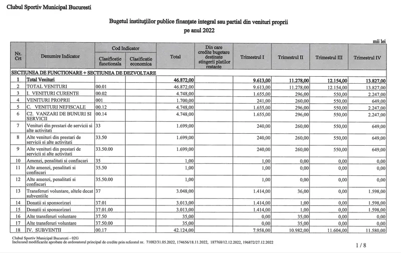 Bugetul total pe anul 2022 a fost de peste 46 milioane lei din care 42 de milioane subvenții din partea primăriei. După cum se vede din tabel, donațiile și sponzorile nu sunt nici măcar 3 milioane de lei, adică 8%.
