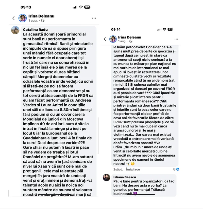 La 23 august, Irina Deleanu, președinta FRGR postează următorul mesaj: