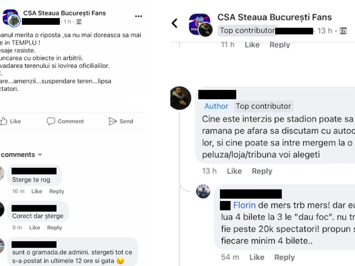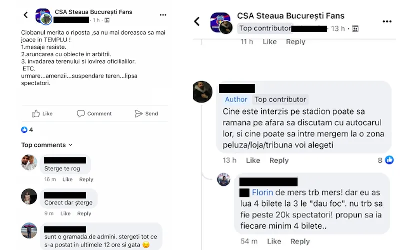 Imediat ali fani au comentat "Șterge te rog" sau "Corect, dar șterge", "Șterge repede, ce ai zis nu e greșit, dar avem MAI în grup", spune un fan al CSA Steaua.