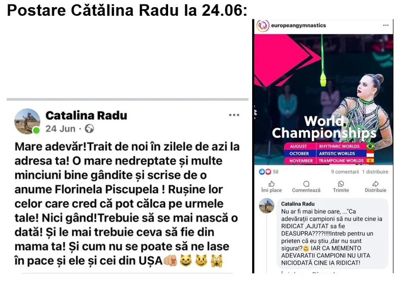 Cătălina Radu, antrenoare la lotul olimpic și membră a Comitetului Executiv al FRGR, scria despre sportive și părinții lor: