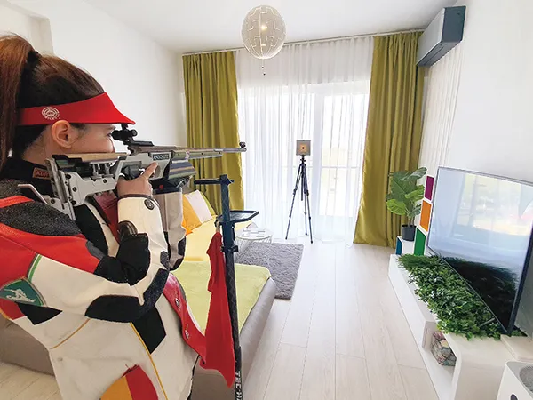 La fel ca și ceilalți sportivi, Laura a fost nevoită să se antreneze acasă. Pare complicat pentru un sport care se practică într-un poligon, cu o armă.