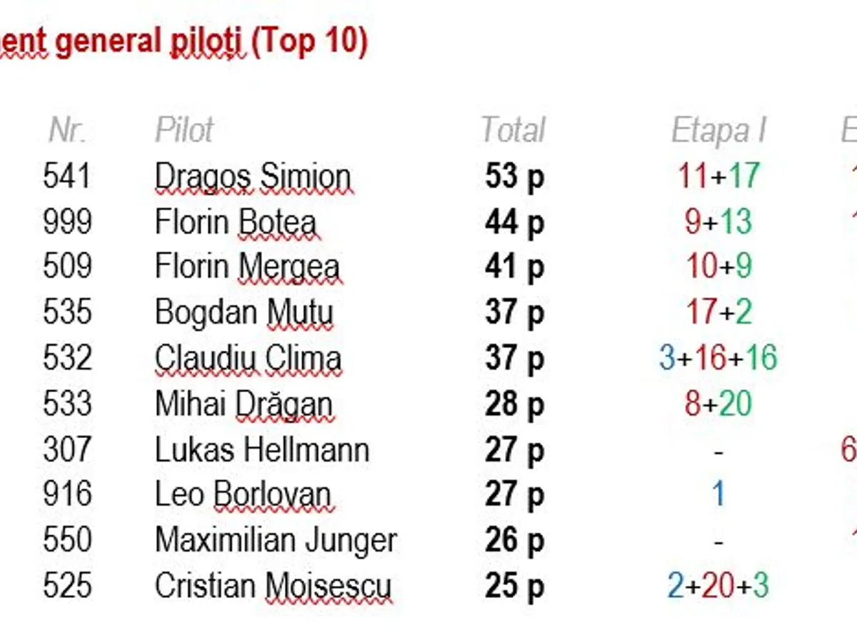 *Rezultatele și clasamentele sunt provizorii. Acestea vor fi validate în urma analizei de către comisarii de traseu, iar ulterior validate de Comisia de Competiții a FRAS.