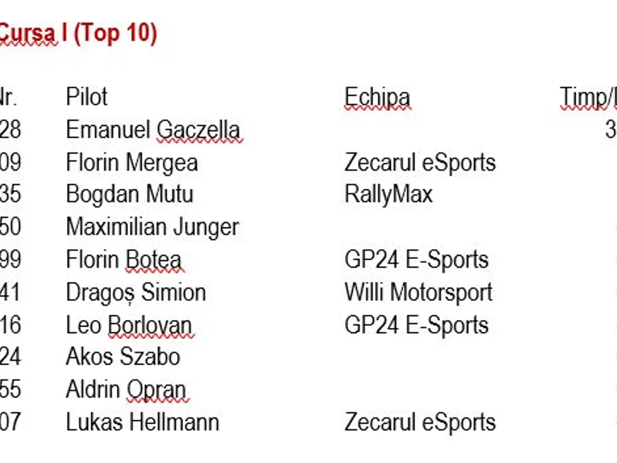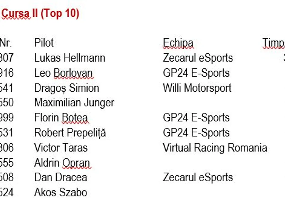 Top Ten-ul grilei de start a fost completat de Leo Borlovan, Bogdan Mutu, Dragoș Simion și Maximilian Junger. Cristian Moisescu, pilotul care a deschis lista învingătorilor din Campionatul Național Digital de Circuit Betano, va pleca în cursă de pe linia a șasea, alături de el fiind coechipierul său de la Virtual Racing Romania, Bogdan Moldovan.