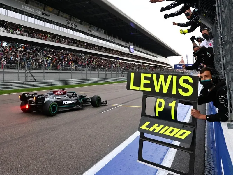 Lando Norris a mirosit victoria în MP al Rusiei, după ce a obținut primul pole position din carieră și cu trei tururi înainte de final conducea plutonul. A venit ploaia, Norris a riscat să rămână în pistă pe slick-uri și a ieșit în decor. Hamilton, pe cauciucuri intermediare, a profitat și și-a trecut în palmares cea de-a 100-a victorie.
